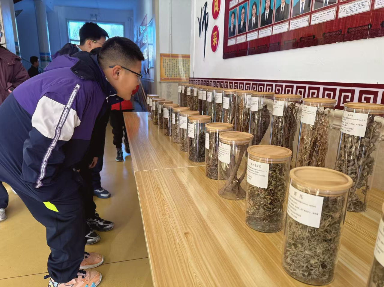 学校精心打造的中医药主题展成为了孩子们探索中医药文化的第一站。展厅内,五十多种五寨道地药材标本整齐陈列,黄芪的质朴、党参的醇厚……每一种药材都仿佛在诉说着自己的故事。孩子们睁大好奇的眼睛,仔细观察着这些药材的形态、色泽,用心感受着家乡地域药用资源的独特魅力,在心中种下了对中医药文化探索的种子。