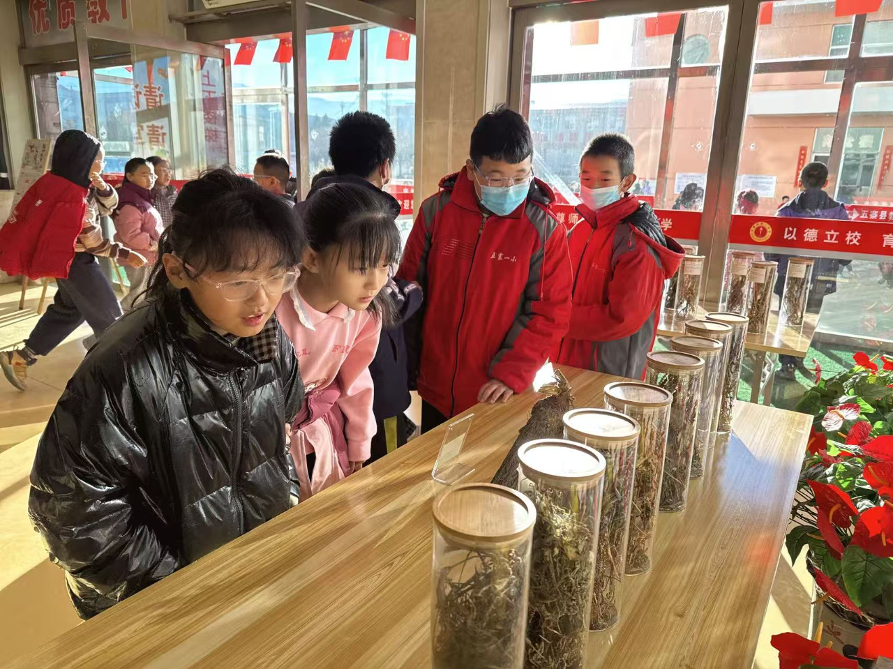 学校精心打造的中医药主题展成为了孩子们探索中医药文化的第一站。展厅内,五十多种五寨道地药材标本整齐陈列,黄芪的质朴、党参的醇厚……每一种药材都仿佛在诉说着自己的故事。孩子们睁大好奇的眼睛,仔细观察着这些药材的形态、色泽,用心感受着家乡地域药用资源的独特魅力,在心中种下了对中医药文化探索的种子。