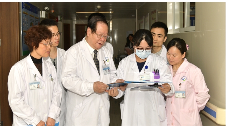 2025年仲夏,在广州中医药大学第一附属医院肿瘤病区的晨光里,84岁的国医大师周岱翰仍坚持每周一上午查房。白大褂口袋里的笔式手电、听诊器泛着温润光泽,他俯身询问患者饮食起居,指尖搭脉时眼神专注,身后围拢的弟子们手中的笔记本上记得密密麻麻。这一幕,早已成为他半个多世纪以来的工作日常。