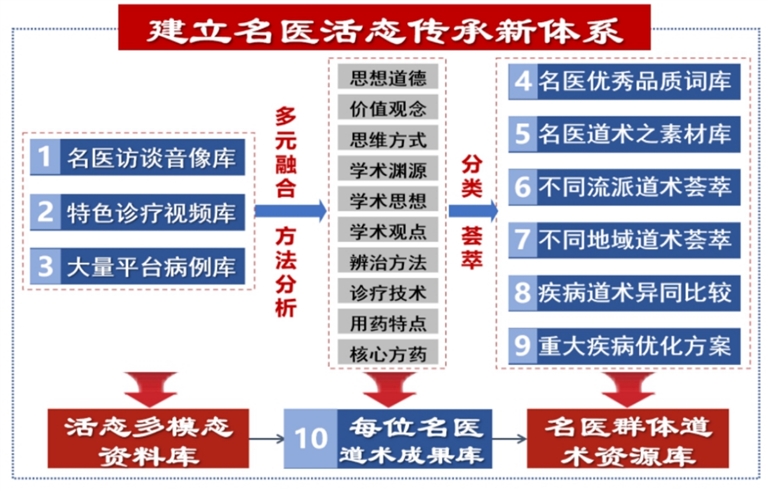 在上述体系中,笔者团队基于多元融合方法,系统挖掘名老中医的道术精华,形成了基于扎根理论研究的136位名老中医道术传承研究报告和基于500份三诊次病例系列研究的道术系统研究报告,共完成93234份名老中医病例的整理上传,其中包括三诊次及以上病例65795份;为每位名老中医录制了至少一种独特辨证方法、特色诊疗技术等视频资料;获得了全国不同地域和流派的名老中医的思想道德、价值观念、文化精神、学术渊源、学术观点、辨治方法、诊疗技术、核心方药等道术两个层面的精华。