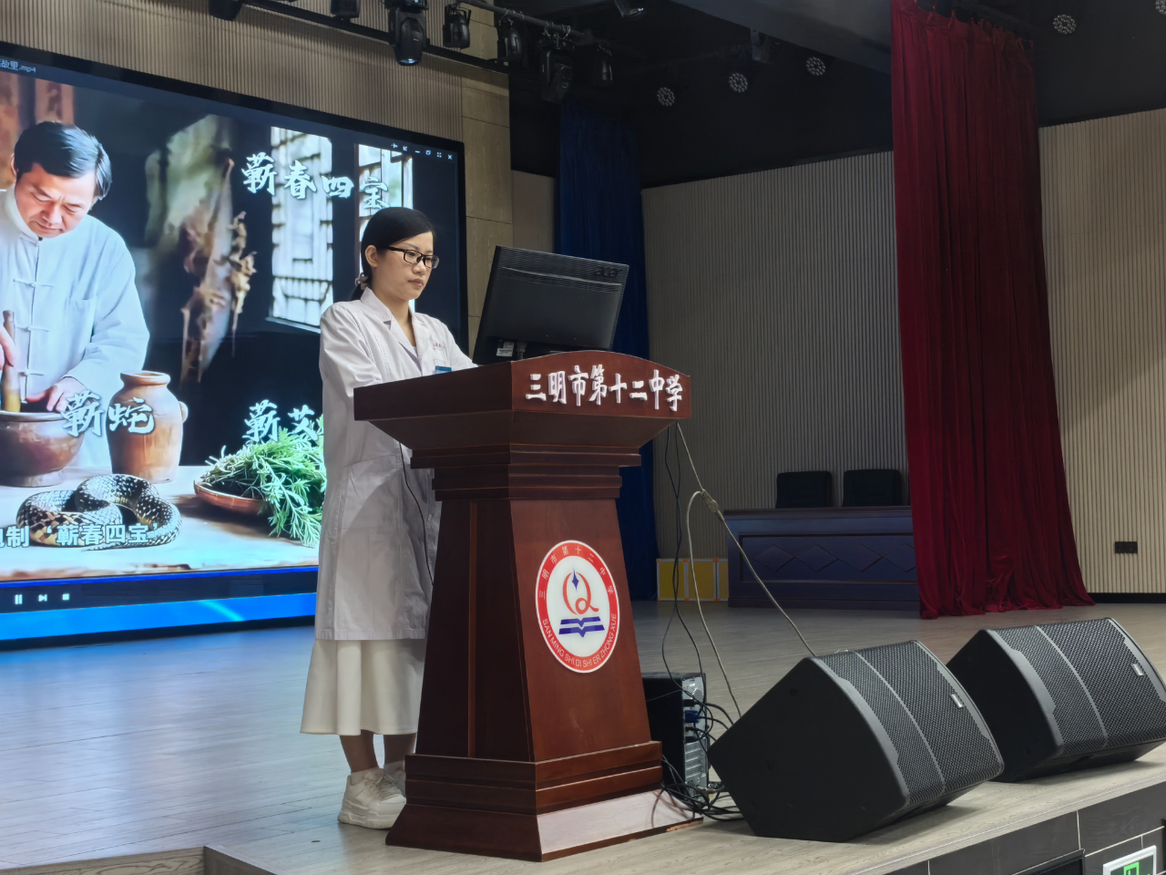 为传承中华优秀传统文化,让青少年近距离感受中医药的独特魅力,2025年10月20日,三明市第十二中学在《中国中医药报》社大力支持下,开展2025年中医药文化进校园主题日活动,特别邀请三明市中西医结合医院陈龙香医师开展“名医故里学名医”专题讲座,全校数百名师生现场聆听。
