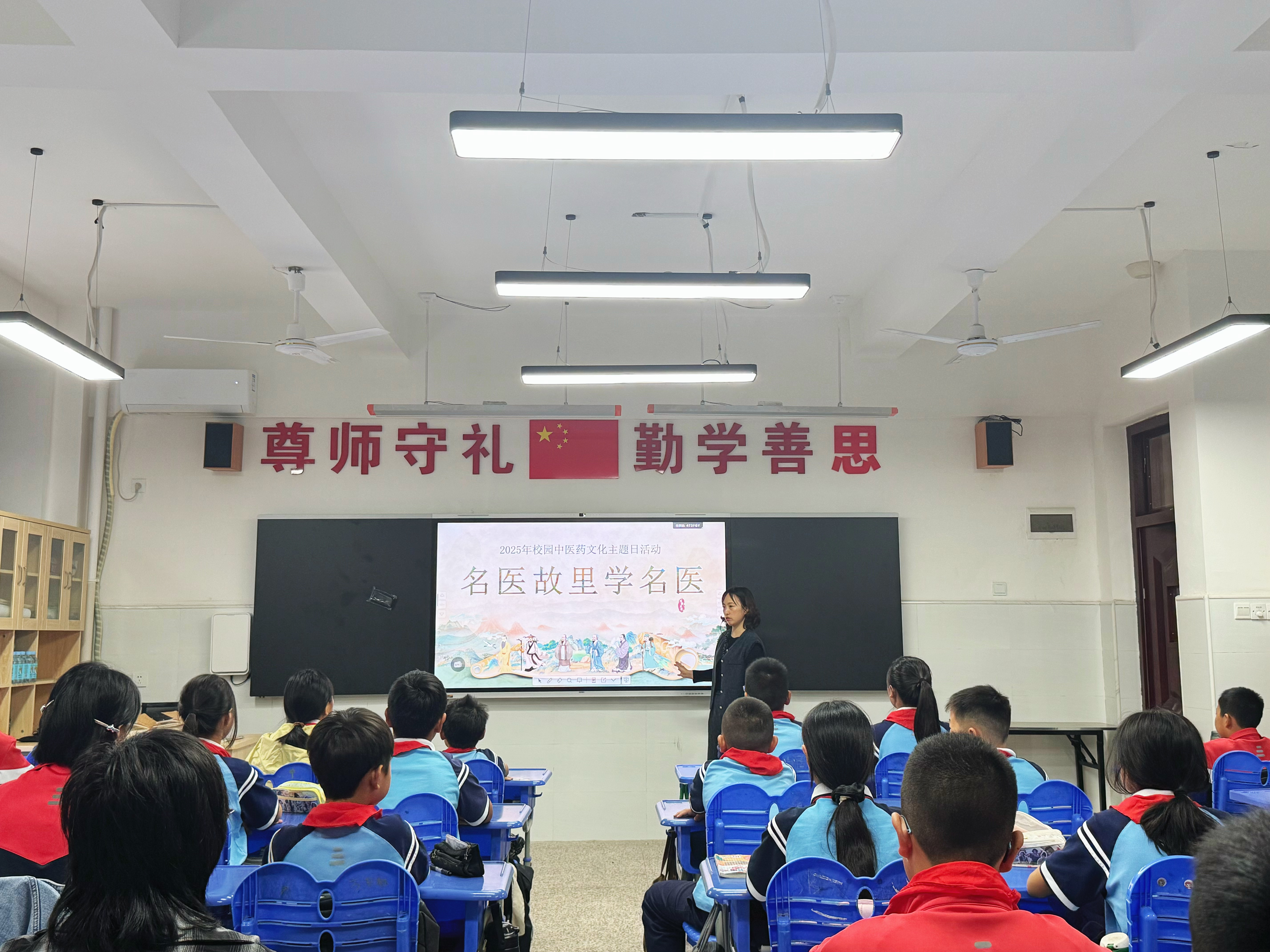 活动进一步聚焦本土,以“家乡有哪些中医药名人”的提问引发学生兴趣,并重点介绍了本地古代中医药名家董奉的生平事迹——从他隐居庐山时“杏林春暖”的典故,到坚持免费为百姓治病、仅求患者在房前栽种杏树的善举。一个个感人至深的行医故事,既让学生深刻体会到本土中医药文化的厚重底蕴,也因“家乡名医”的亲切感,进一步激发了他们的文化自豪感。