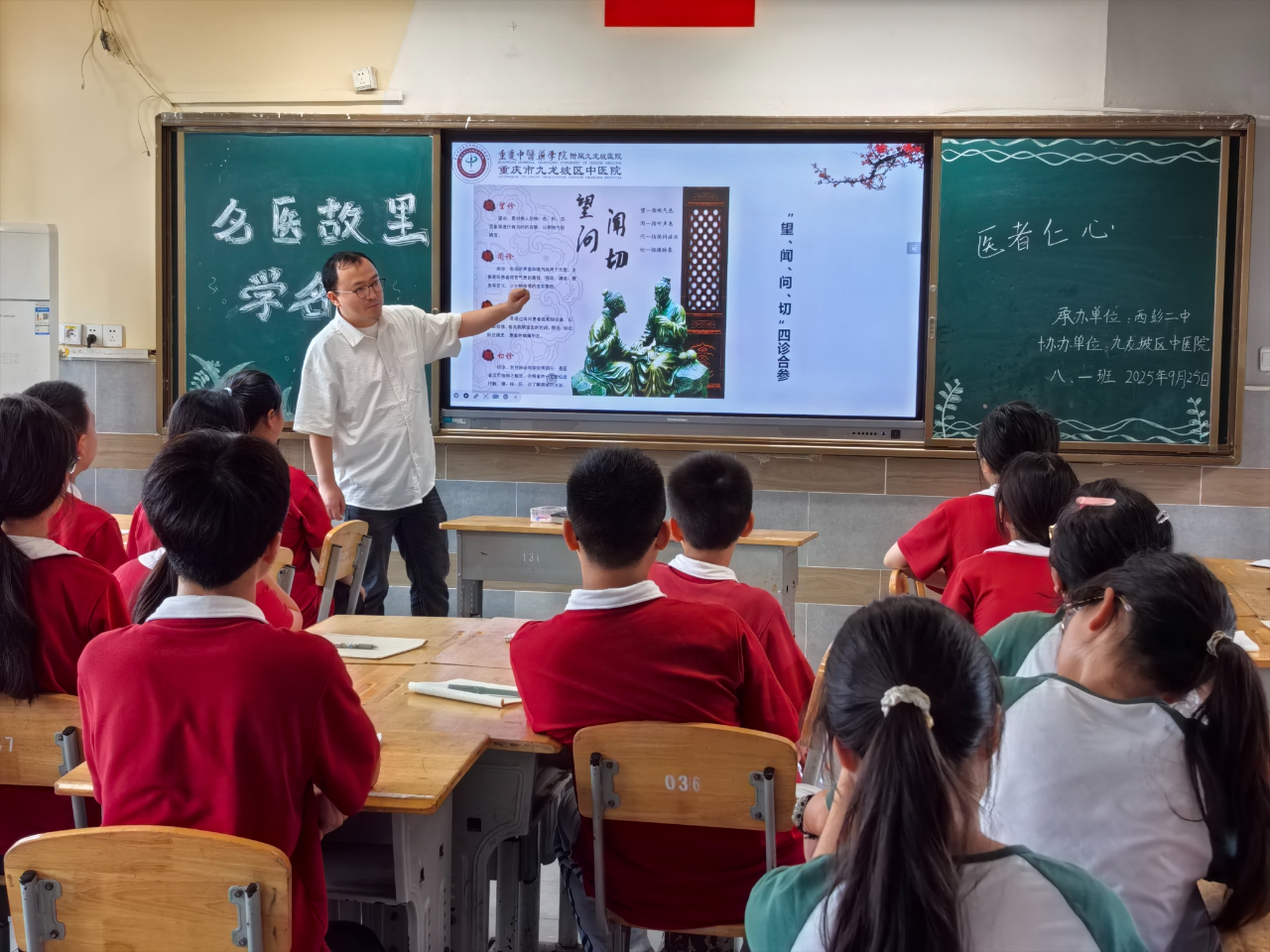 2025年9月25日下午,西彭二中八年级的同学们迎来了一场别开生面的中医药文化主题日活动。这场以“名医故里学名医”为主题的活动历时两节课,通过理论讲解与实践互动相结合的方式,带领学生走近源远流长的中医药文化,感悟名医精神,激发文化自信。