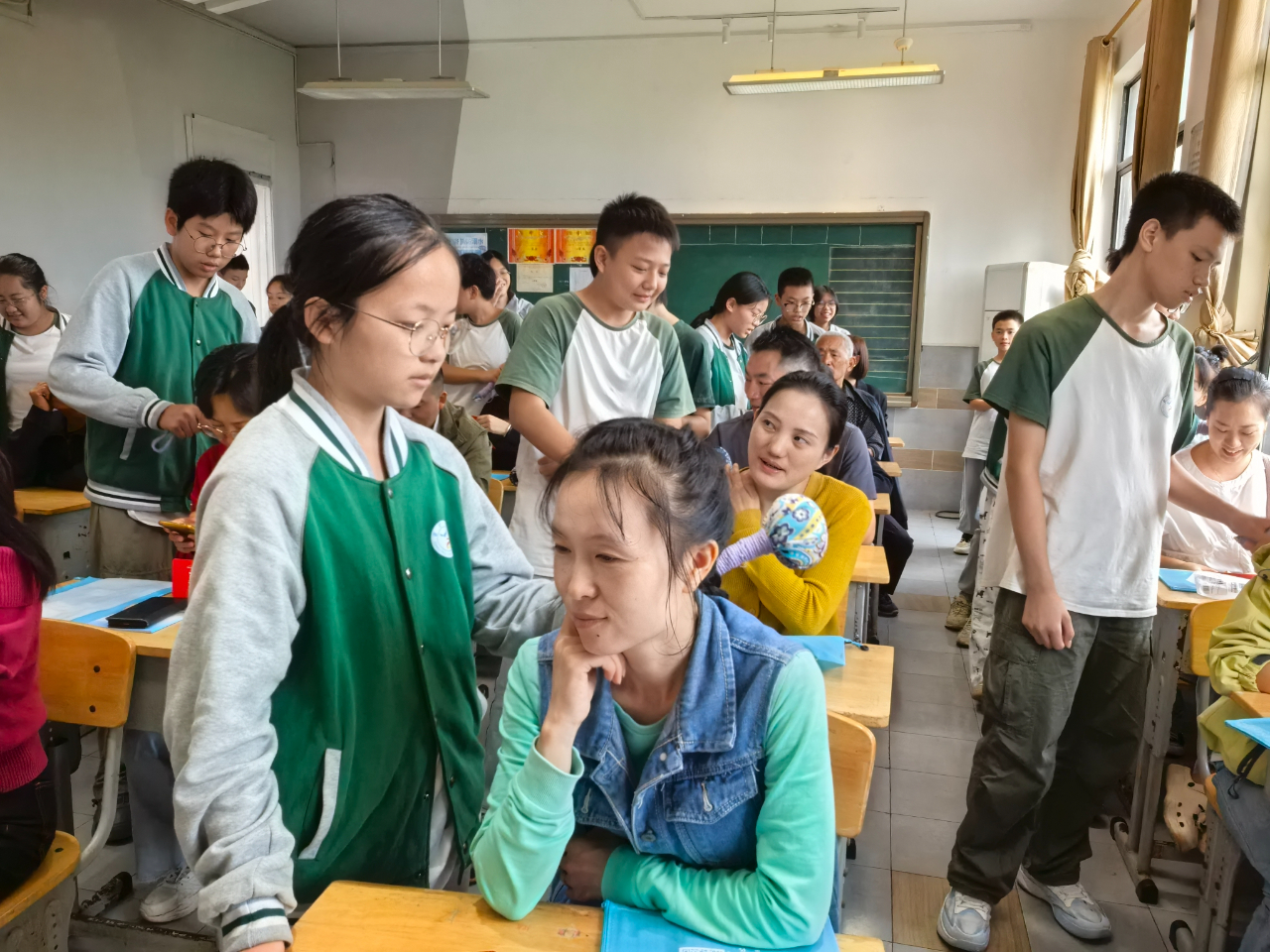 第二节课将活动推向高潮。在九龙坡区卫健委的大力支持下,学校特邀区中医院两位专家走进校园,与同学们展开医学实践互动。两位医生带领学生认识“望神”“望色”“舌诊”等诊断方法,并现场指导学生体验把脉与刮痧的基本手法。同学们热情高涨,纷纷踊跃参与,浓厚的兴趣让专家直至下课仍难以“脱身”。