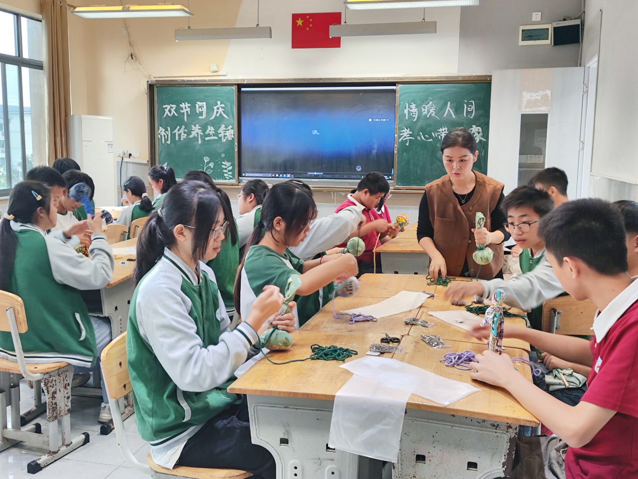 经过精心制作,各小组纷纷展示自己的劳动成果,脸上洋溢着自豪与喜悦。在随后的"爱心寄语"环节,同学们在定制卡片上认真写下了对父母、长辈或老师的祝福语。"愿您敲走疲惫,身体健康!""奶奶,祝您节日快乐!"等真挚话语,承载着浓浓的感恩之情与孝亲敬老的传统美德。