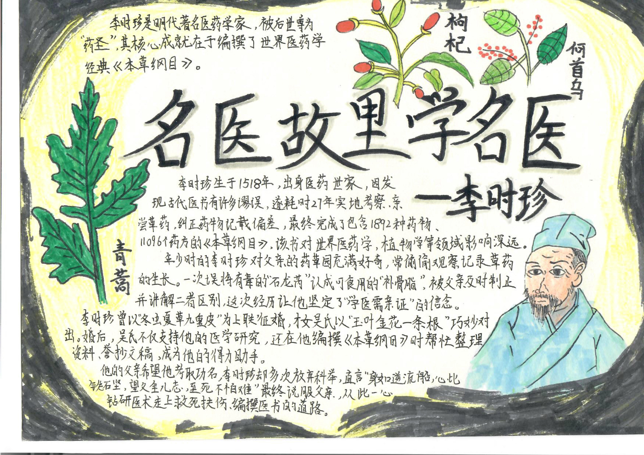 活动中,同学们还发挥创意,将中草药元素融入艺术创作。有的用水墨渲染蒲公英的轻盈飘逸,有的用彩铅细腻描绘枸杞的饱满红润,更有同学巧妙构图,将灵芝、菊花等本草与名医故事巧妙结合。在药香与墨香交织的氛围中,一幅幅生动作品不仅展现了中草药的形态之美,更传递出中医药文化的深厚底蕴。