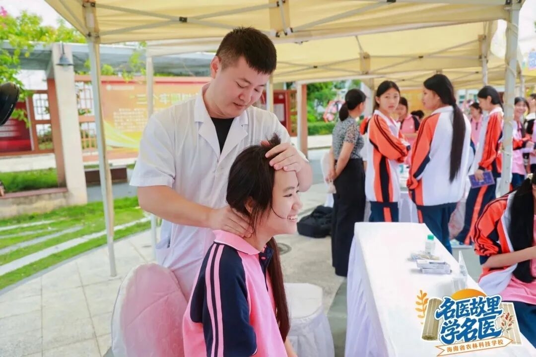 在五指山市中医医院医生们的指导下,同学们零距离接触了把脉看诊、推拿、肩颈放松、穴位按压等中医特色诊疗,通过亲身体验感受中医药的奇妙魅力。