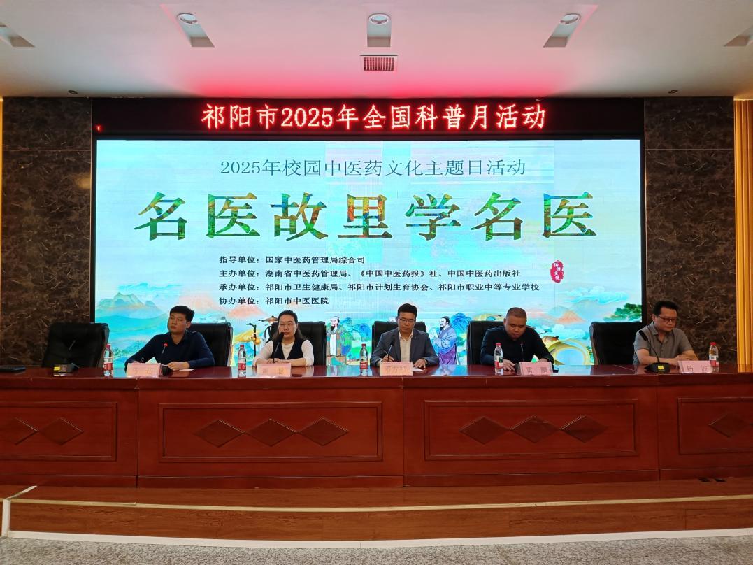 9月25日,由国家中医药管理局综合司指导,湖南省中医药管理局、《中国中医药报》社、中国中医药出版社联合主办,祁阳市卫生健康局、祁阳市计划生育协会、祁阳市职业中等专业学校共同承办,祁阳市中医医院协办的“名医故里学名医”校园中医药文化主题日暨“祁阳市2025年全国科普月活动”,在祁阳市职业中等专业学校顺利开展。此次活动是贯彻落实国家“十四五”中医药文化弘扬工程的重要举措,旨在推动中医药文化融入校园教育,增强青少年对中华优秀传统文化的认同与自信。
