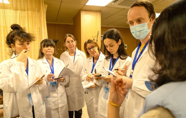 理论的沉淀,终究要落地。当“洋弟子”们跟着临床指导老师走进诊室,每个人脸上都写满了紧张与兴奋。语言的隔阂、生活习惯的差异,让他们攥紧了手中的笔记本,即便有疑问也迟迟不敢开口。这时,国家级非物质文化遗产杨继洲针灸代表性传承人金瑛面带温和笑意,亲切地说:“欢迎来到这里。从今天起,我们一起探索针灸的奥秘。”温暖坚定的话语像春风吹散了学生们的拘谨,紧绷的肩膀渐渐放松。